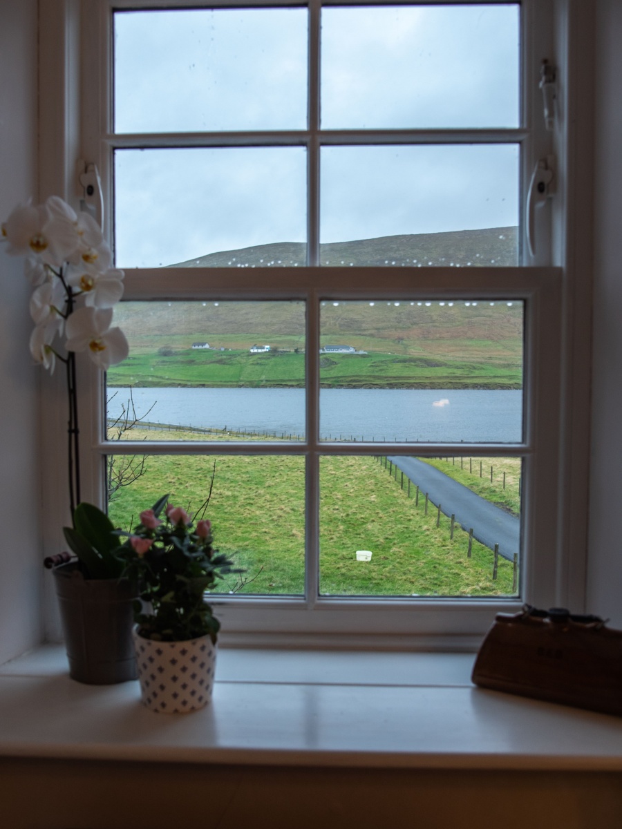 It has enjoyed a busy life since it was built as the factor’s house for Kergord House in 1856. The west wing which faces the sea was added in the 1880s when it became a halfway house where horses were changed on carriages travelling to the westside of Shetland. The ground floor rooms were used as a waiting room, where passengers could sit by the fire or they could rent the rooms upstairs. Also known as the Huxter Inn in times past, it offered fishing and hunting holidays.