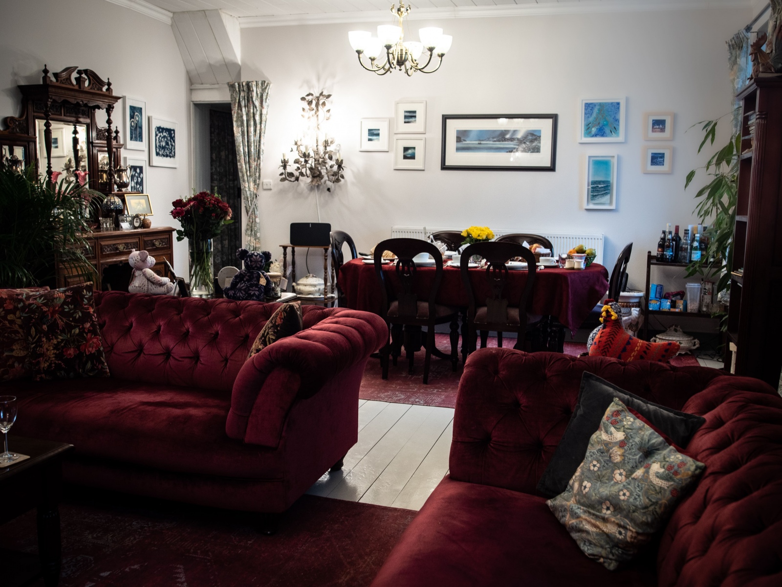 We have a large guest lounge with a cosy stove and you can always be sure of a warm and friendly welcome along with good food in tranquil surroundings whenever you visit Ervhouse. The lounge is also suitable for business guests where you can work with good broadband and mobile signal.